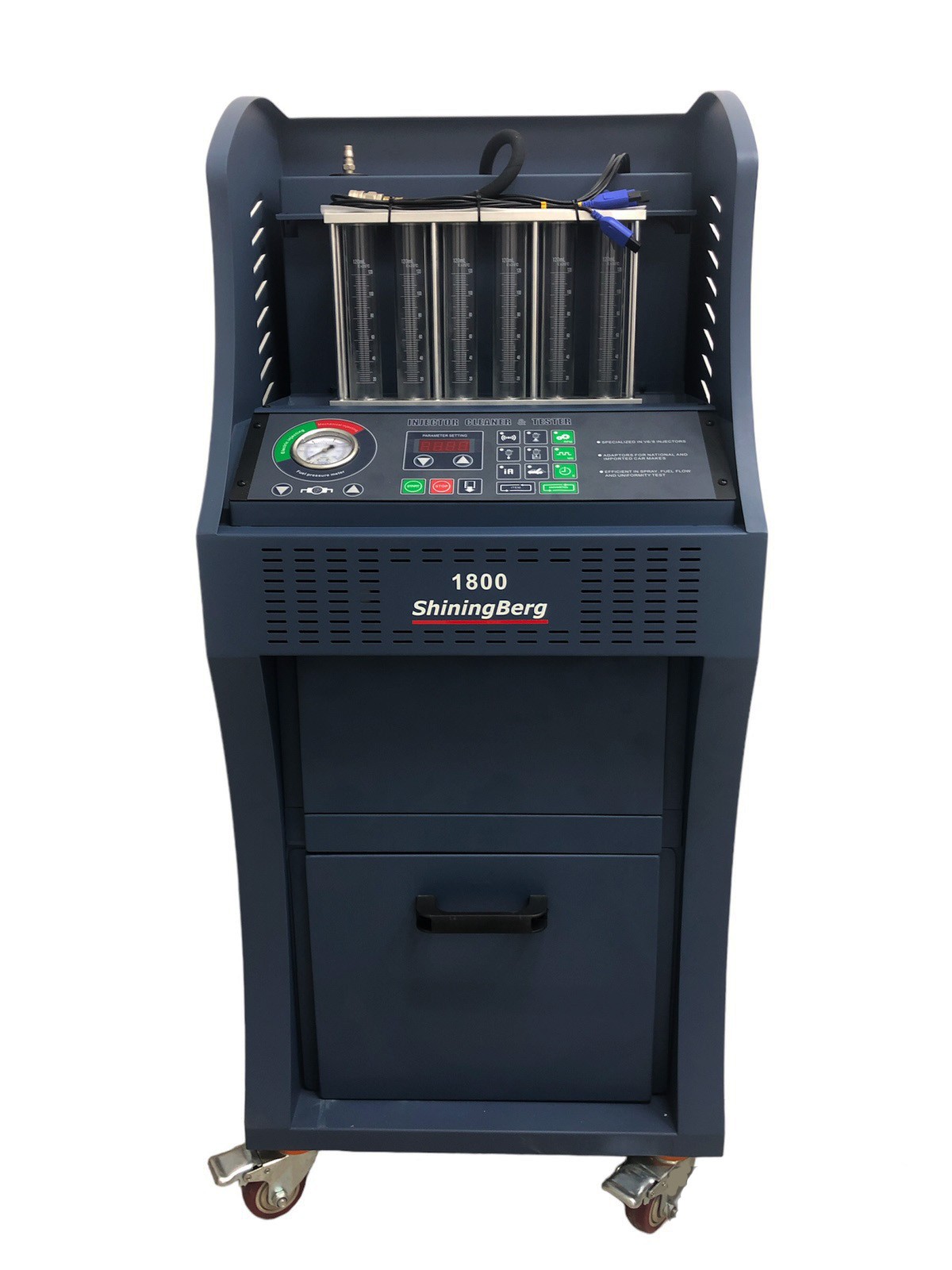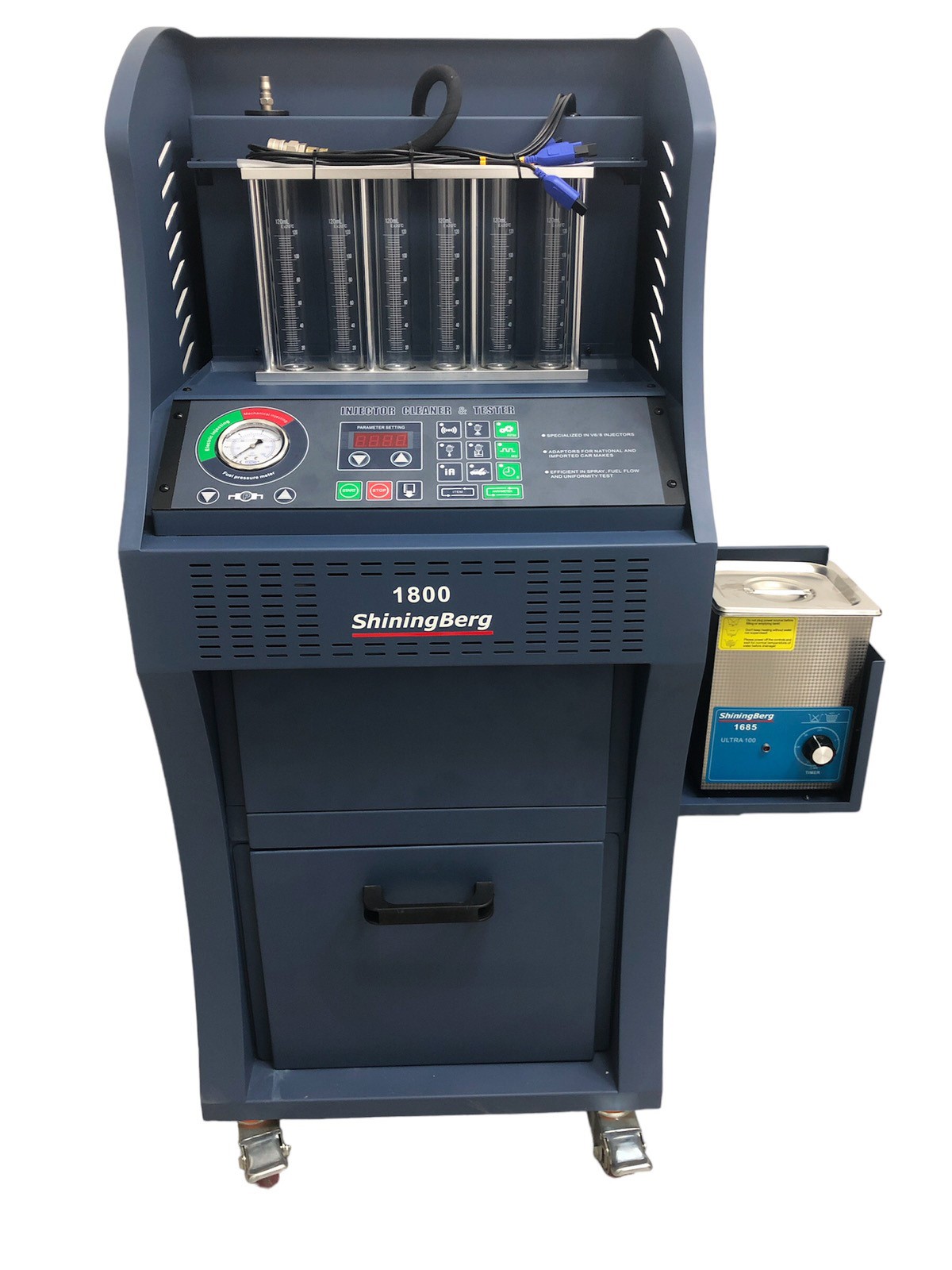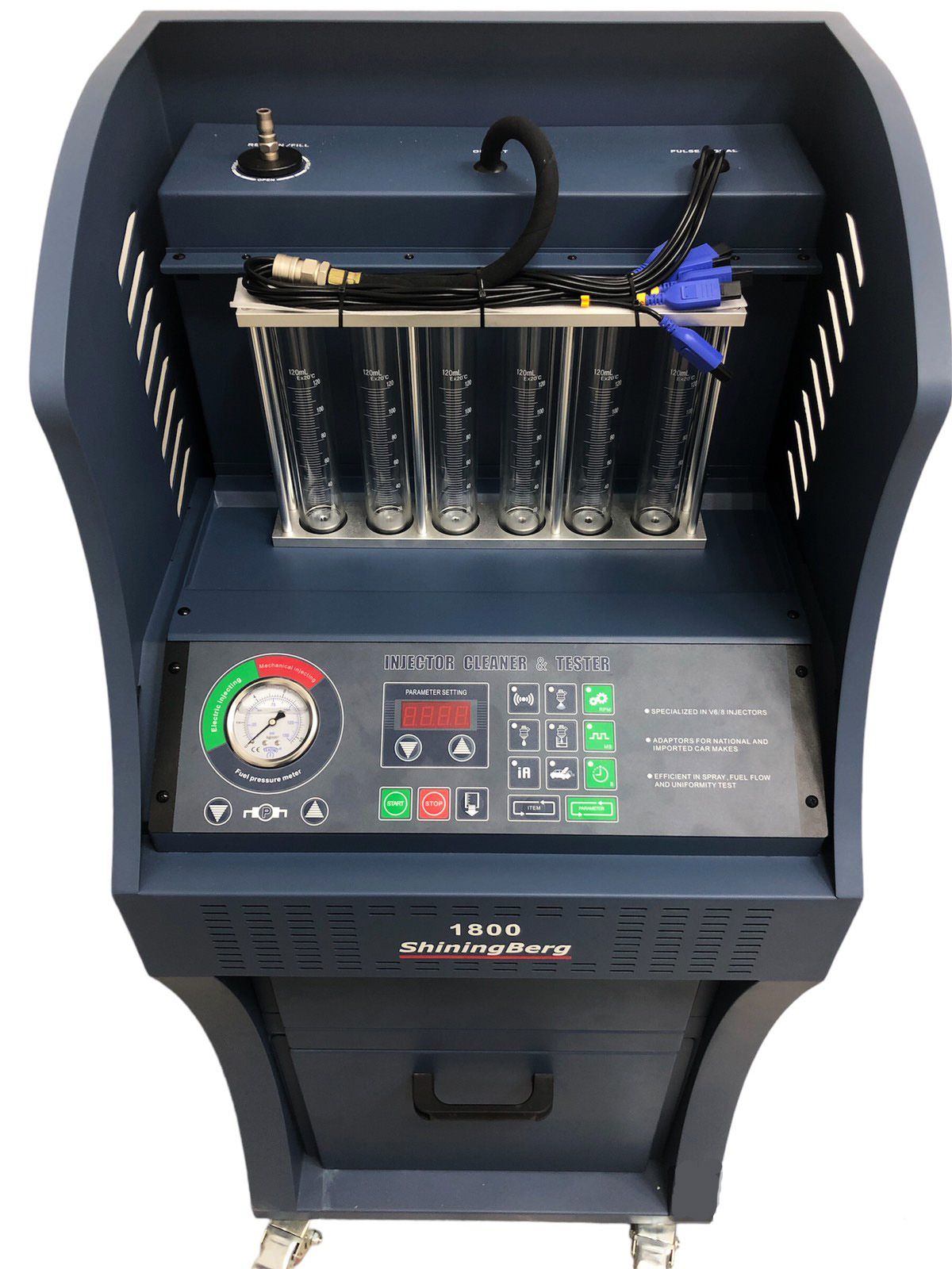Очиститель и тестер инжекторов сочетает в себе самые передовые технологии управления. Может очищать и тестировать все виды автомобильных форсунок, моделируя условия работы двигателя, а также очищать систему подачи топлива прямо на автомобиле.