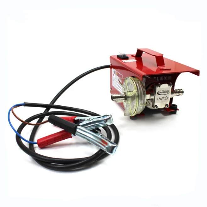Зубчатый насос для перекачки жидких масел, антифриза, дизельного топлива, воды с повторно-кратковременным режимом. Корпус насоса из латуни, шестерни из бронзы и вал из нержавеющей стали. Имеет металлический кожух, переключатель вкл/выкл и зажимы для соединения с батареей.