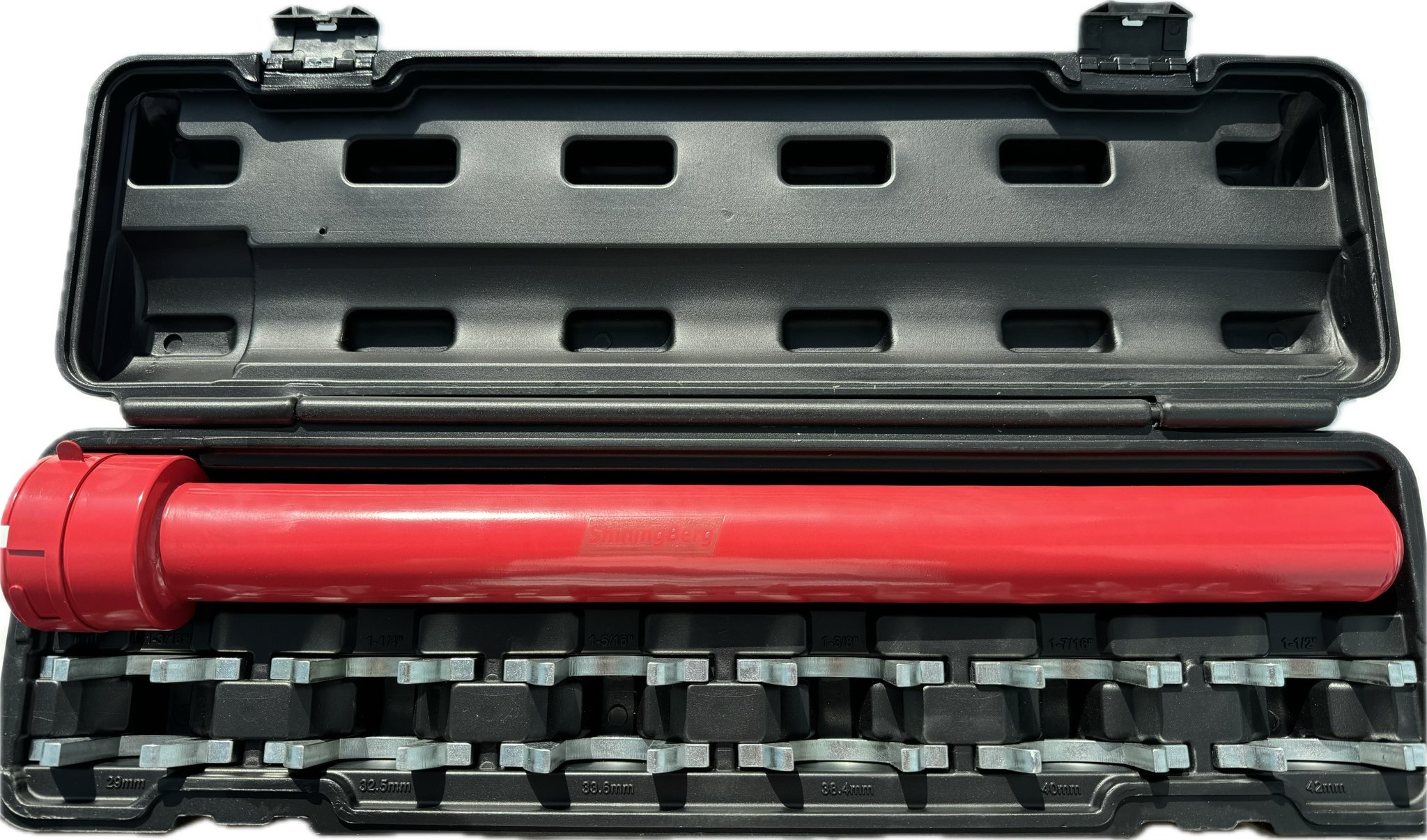НАБОР ИНСТРУМЕНТОВ ДЛЯ СНЯТИЯ ВНУТРЕННЕЙ ПОПЕРЕЧНОЙ ТЯГИ: В этот комплект для рулевой тяги входят 12 размеров адаптеров типа «воронковая лапка»: 1-3/16", 1-1/4", 1-5/16", 1-3/8", 1-7/16", 1-1/2" и 29 мм, 32,5 мм, 33,6 мм, 38,4 мм, 40 мм, 42 мм; Легко снимает большинство внутренних наконечников рулевой тяги
