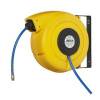 Катушка для воздуха в пластиковом ударопрочном корпусе. Шланг полиуретановый, синего цвета. Катушки оснащены поворотным кронштейном для крепления к стене. Механизм фиксации шланга через каждые 50 см. Желтый цвет.