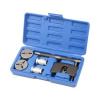 Универсальное устройство для отвода тормозного поршня при замене тормозных колодок. В комплект входят 2-контактный и 3-контактный регулируемые адаптеры, компрессионный винт с возможностью работы в двух направлениях: вправо и влево, упор и магнитные соединения между винтом и адаптером.