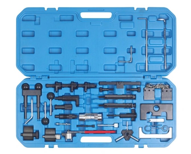 Повний набір інструментів для регулювання фаз газорозподілу двигуна групи VAG, як для бензинових, так і для дизельних двигунів.