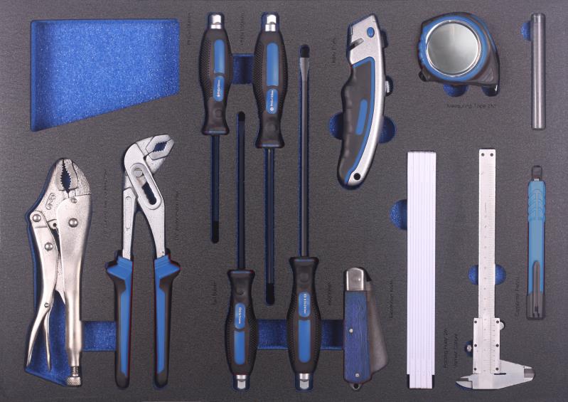 Набор инструмента ShiningBerg в ложементе 15 ед. (11815)- в ложементе из материала EVA (этиленвинилацетата) предназначен для комплектации передвижных инструментальных тележек или слесарных верстаков при создании индивидуальных рабочих мест на станциях технического обслуживания автомобилей (СТО) и других предприятиях, занимающихся обслуживанием и ремонтом различной техники.