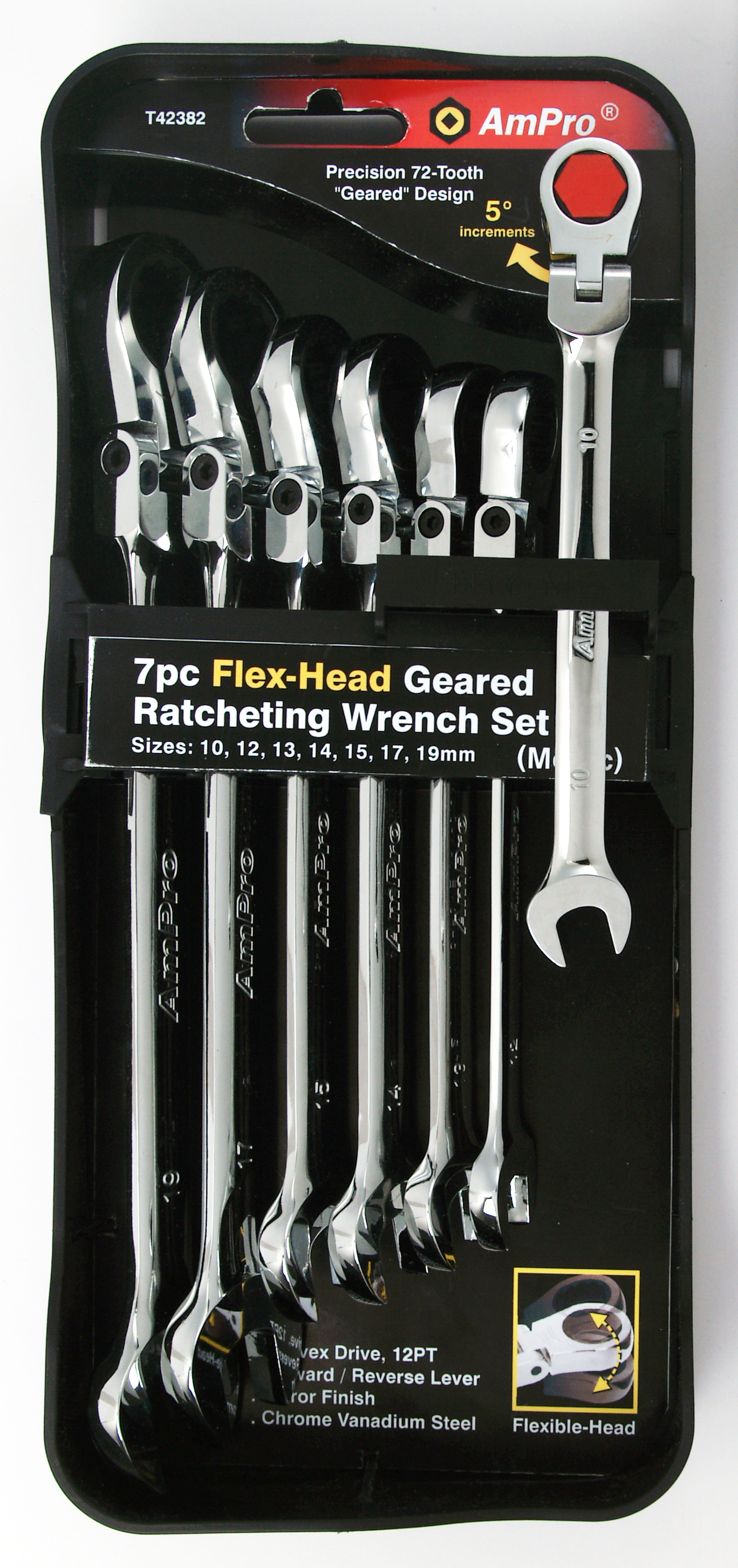 Набор ключей комбинированных с механикой свободного хода (10- 19мм), 7 предметов