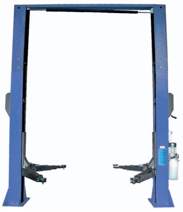 Асимметричный двухстоечный, двухцилиндровый электрогидравлический подъёмник с верхней синхронизацией и стальным тросом.