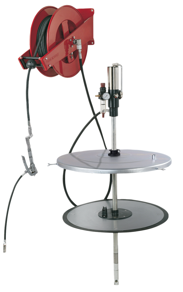Комплект для пневматической раздачи смазок подходит для бочек 180 кг и может использоваться как в помещениях, так и вне помещений. Максимально достигаемое давление 400 бар.