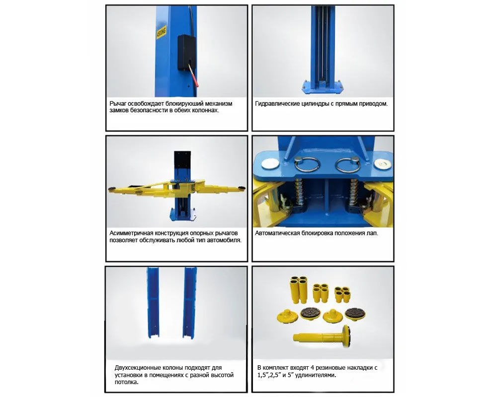 Автомобильный двухстоечный подъемник PEAK 209SACH с верхней синхронизацией удобен и надежен в эксплуатации при проведении самых различных слесарных работ в условиях автосервиса, СТО, гаражной мастерской.