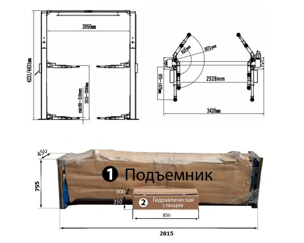 Место 1 (ДхШхВ): 2815 X 450 X 755
