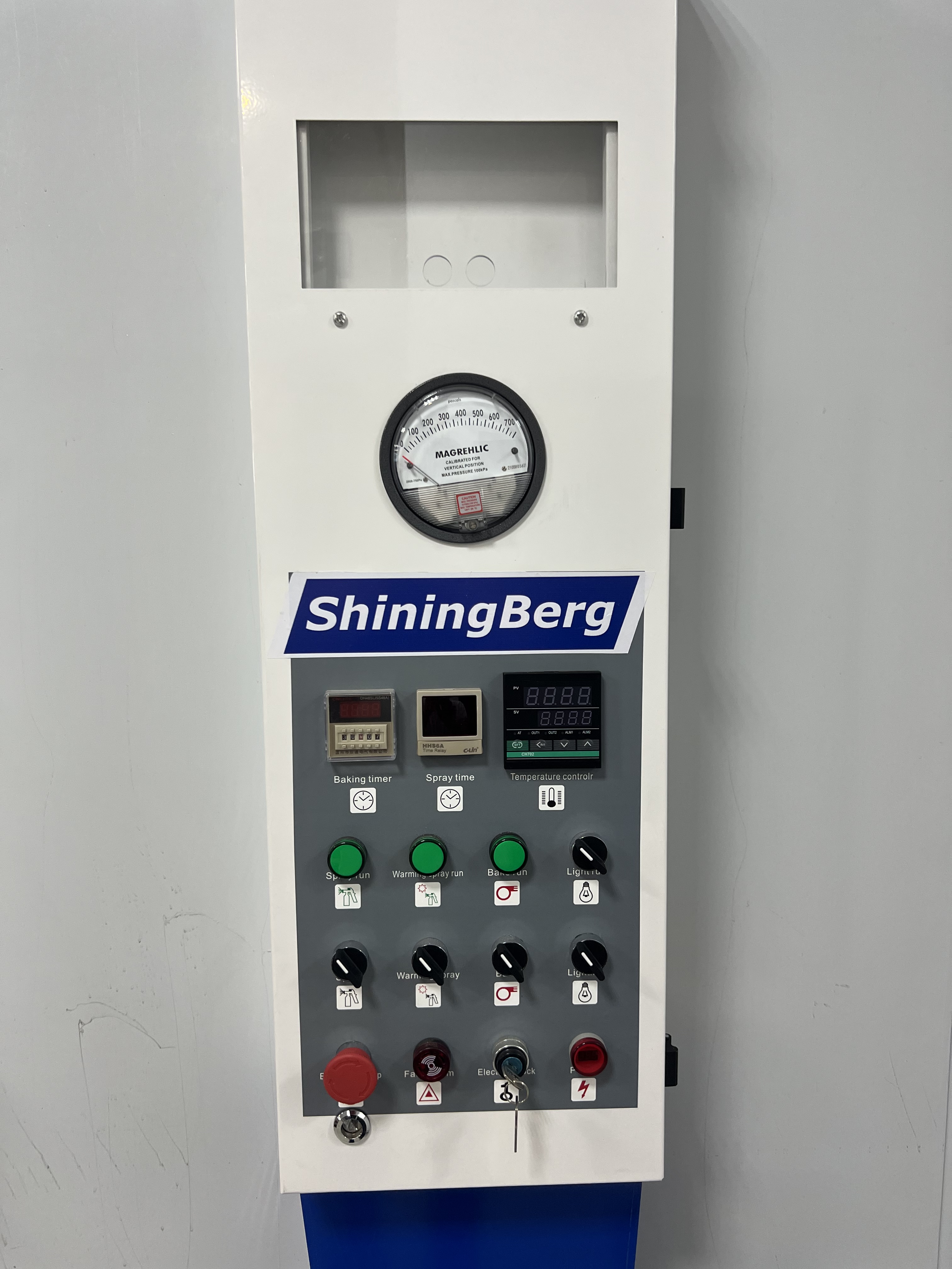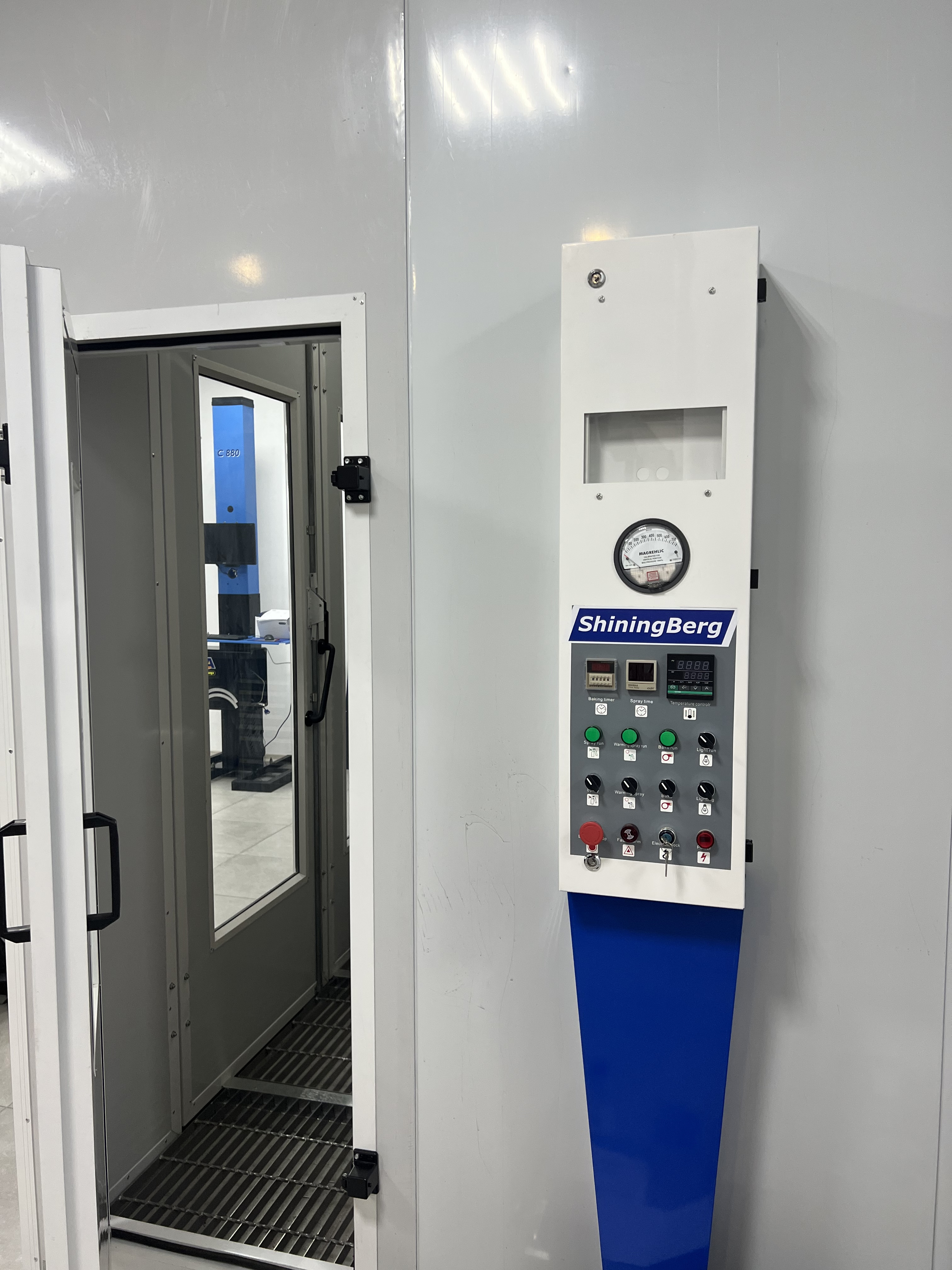 Окрасочно сушильная камера ShiningBerg предназначена для окраски легковых автомобилей целиком или частично. Камера представляет собой кабину на металлическом основании с вентиляторной группой для нагнетания избыточного давления воздуха внутри кабины и для обеспечения устойчивого воздухопотока.