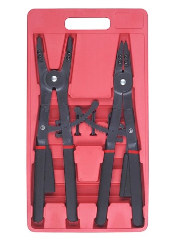 В набор входит: клещи для внутренних стопорных колец - 1 ед, клещи для внешних стопорных колец - 1 ед.