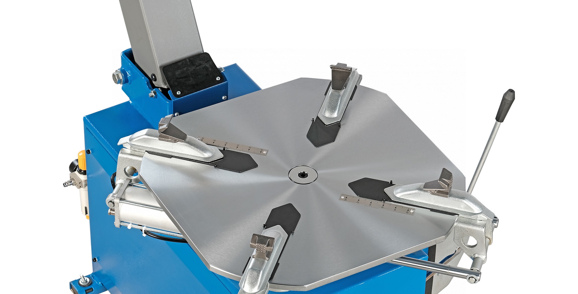Головка демонтажа, настольные зажимные кулачки и отжимная лапа дополнительно оснащены защитными насадками, чтобы предотвратить повреждение дисков.