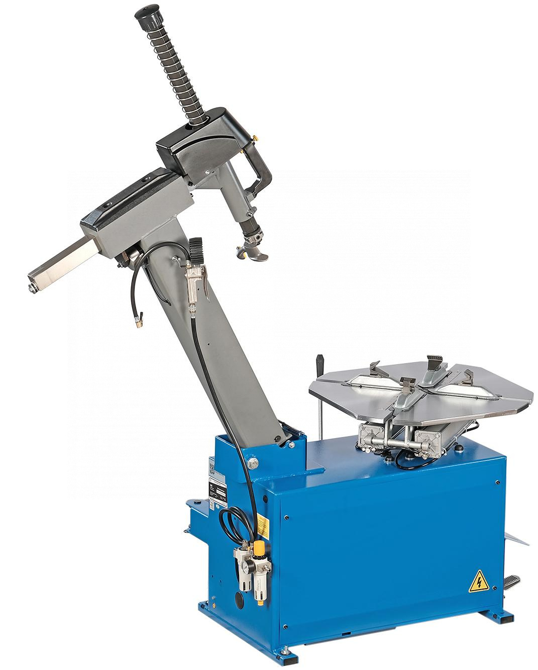 -Шиномонтажный станок при помощи педали осуществляет движение монтажной стойки, что облегчает и ускоряет процесс работы.
