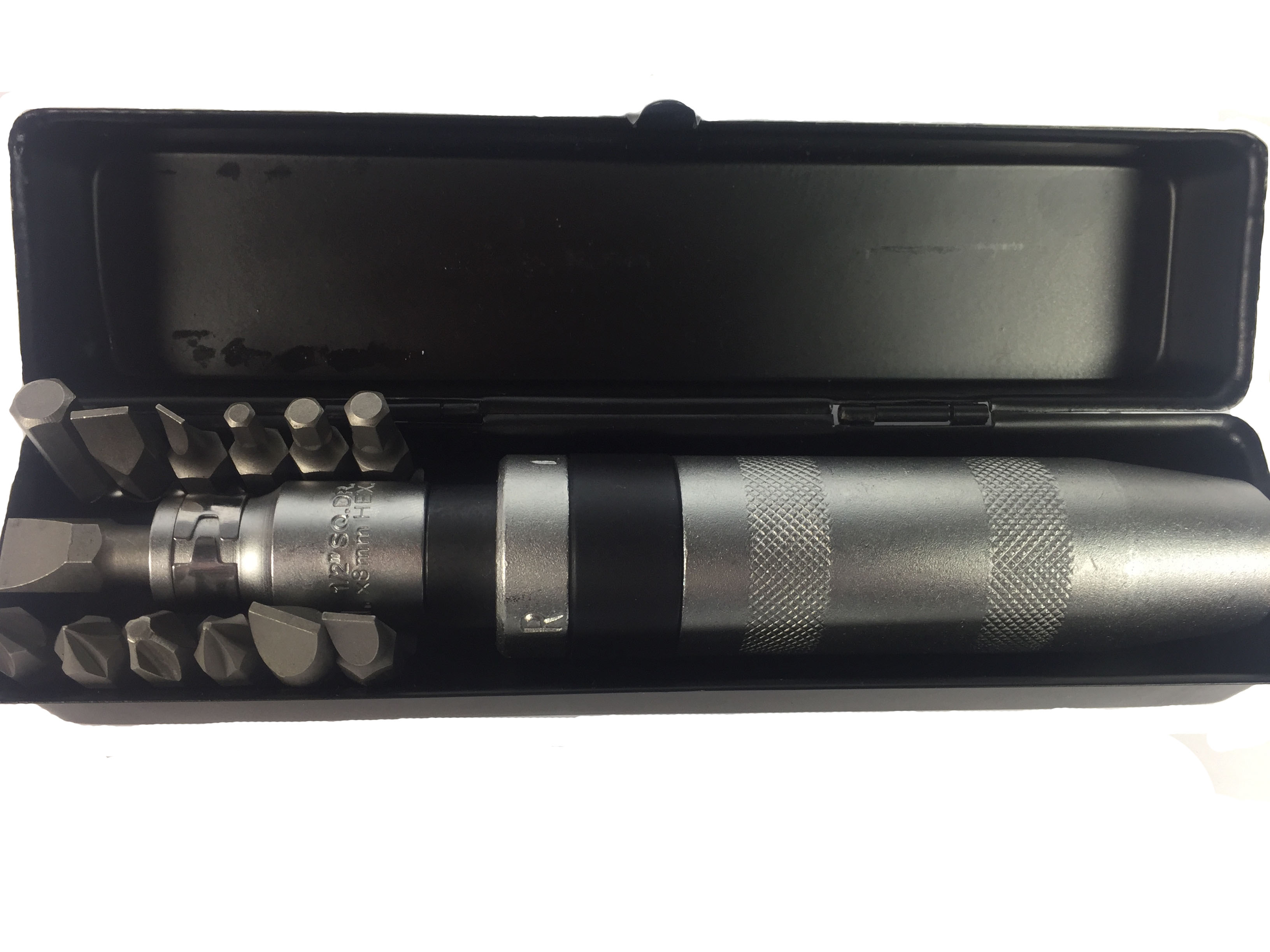 Отвертка из прочной углеродистой стали, проходит термообработку (HRC 38-48). В комплект входят 13 насадок из прочной стали Cr-V - SL 5, 6, 8, 9; PH1, PH2 - 2 шт., PH3, PH4; HEX 4, 5, 6, 8, а также адаптер 1/2''. Реверс для смены направления вращения. Металлический футляр для хранения. Применяется для откручивания крепко затянутых или заржавевших винтов, а также для надежной фиксации винтов и шурупов.